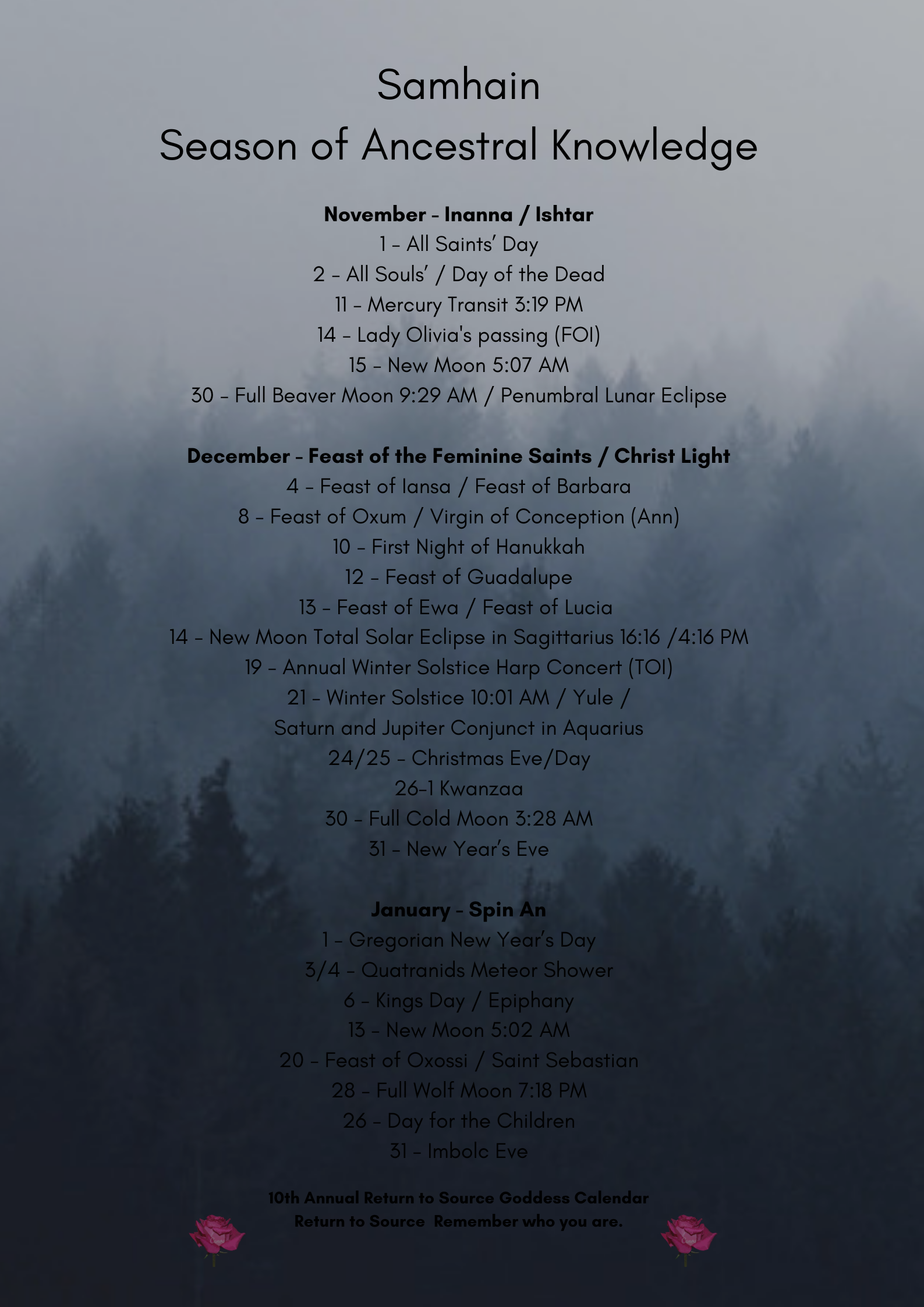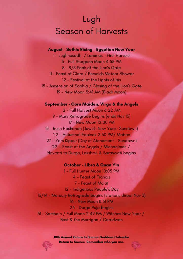 Calendar of Moons, Goddesses & Saints *All times are for Galway, Ireland Share this: Click to share on X (Opens in new window) X Click to share on Facebook (Opens in new window) Facebook Like Loading...
